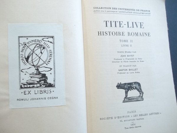 PARIS SOCIETE' D'EDITION LES BELLES LETTRES 1954 - COLLECTION DES UNIVERSITES DE FRANCE - BROSSURA 20 X 14 BUONE CONDIZIONI, - ETICHETTA EX LIBRIS - SEGNI DEL TEMPO.
