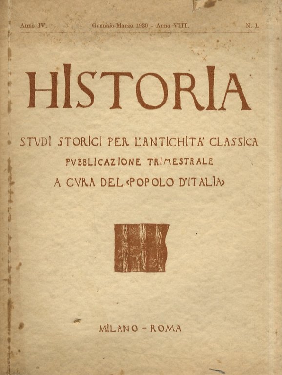 HISTORIA. Studi storici per l'antichità classica. Fondati da Ettore Pais. Nuova serie. Pubblicazione trimestrale. A cura del "Popolo d'Italia". Anno IV 1930: n. 1 (gennaio-marzo), n. 2 (aprile-giugno).