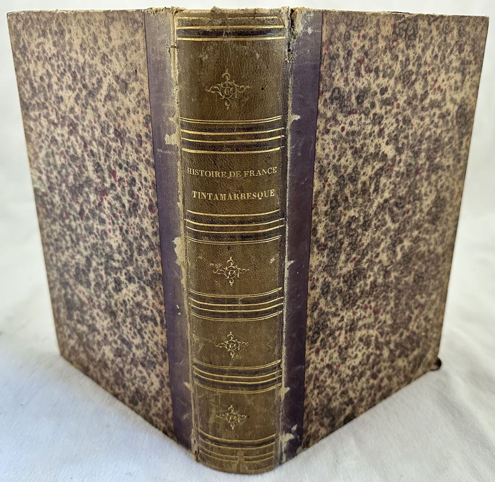 Edizione del 1872 di questa opera sulla storia di Francia a cura di Leon Bienvenue Touchatout. Numerose illustrazioni a cura di Lafosse, Draner, Gill, Hadol, Le Petit, Robida ecc. L'autore descrive la storia dai Galli prima dell'invasione dei Franchi fino a Luigi Filippo I. Ex libris al contropiatto anteriore. In buone condizioni. Copertina in mezza pelle con titolo e decorazioni in oro al dorso in buone condizioni generali con usure ai margini e dorso. Legatura in buone condizioni. Pagine in ottime condizioni con rare fioriture. In 8. Dim. 26,5x18,5 cm. Pp. 796.