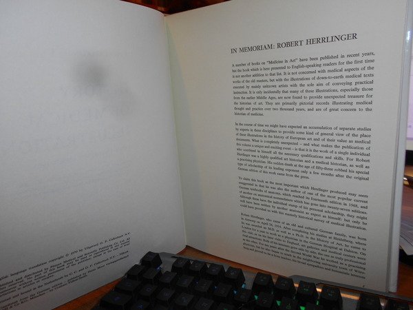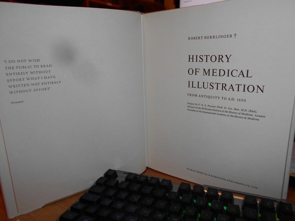 ROBERT HERRLINGER. London, Pitman Medical & Scientific Publishing Co. Ltd, 1970. History of medical illustration from antiquity to A.D. 1600. Preface by F. N. L. Poynter. In-4°, tela edit. con titolo in rosso sul piani e al dorso, sovracopertina ill. a col. 178 pp. con numerose illustrazioni a colori e in bianco e nero anche stampate su carta patinata. In ottimo stato di conservazione. Uff. C - IV - 7