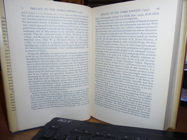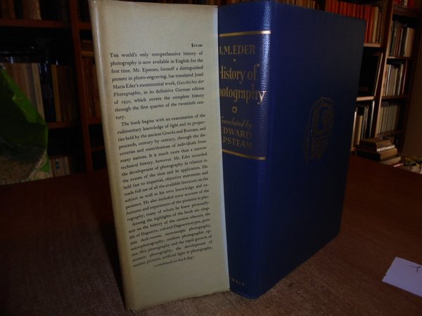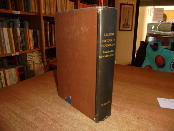 By Josef Maria Eder. New York, Columbia University Press, 1945. HISTORY of PHOTOGRAPHY. In-8°, tela bleu con fregi e titolo in oro, sovracopertina. xx, 860 pp. Sovracopertina con segni del tempo (strappetti). Il libro è in ottimo stato di conservazione. Neg. mens. bianca mob. nero