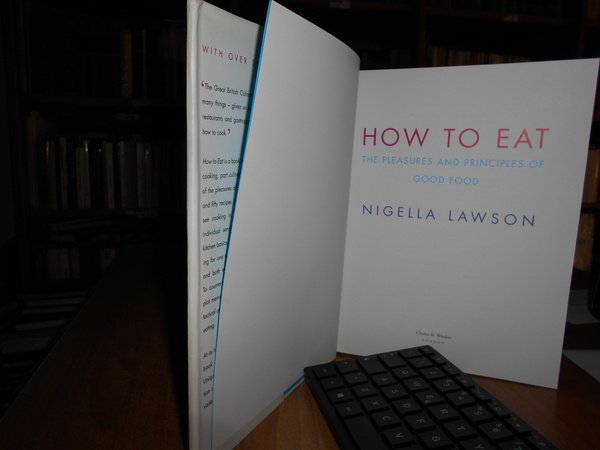 NIGELLA LAWSON. London, Chatto & Windus, 1998. HOW TO EAT. The Pleasures and Priciples of Good Food. In-8°, cartonato edit. con titolo impresso al dorso, sovracopertina ill. a col. xviii, 526 pp. con tavole e illustrazioni a colori n.t. In ottimo stato di conservazione. Uff. stanzetta mob. sinistra I - 4 carc.