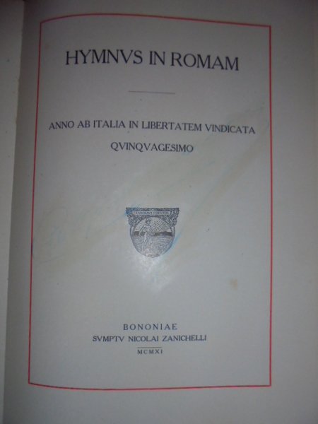 HYMNUS IN ROMEN - INNO A ROMA SUMPTA NICOLAI ZANICHELLI 1911
