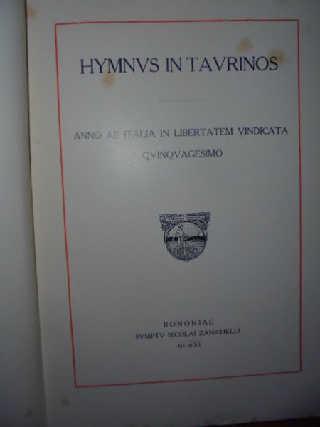 HYMNUS IN TAURINOS. ANNO AB ITALIA IN LIBERTATE VINDICATA QUINQUAGESIMO. INNO A TORINO SUMPTA NICOLAI ZANICHELLI 1911 1911