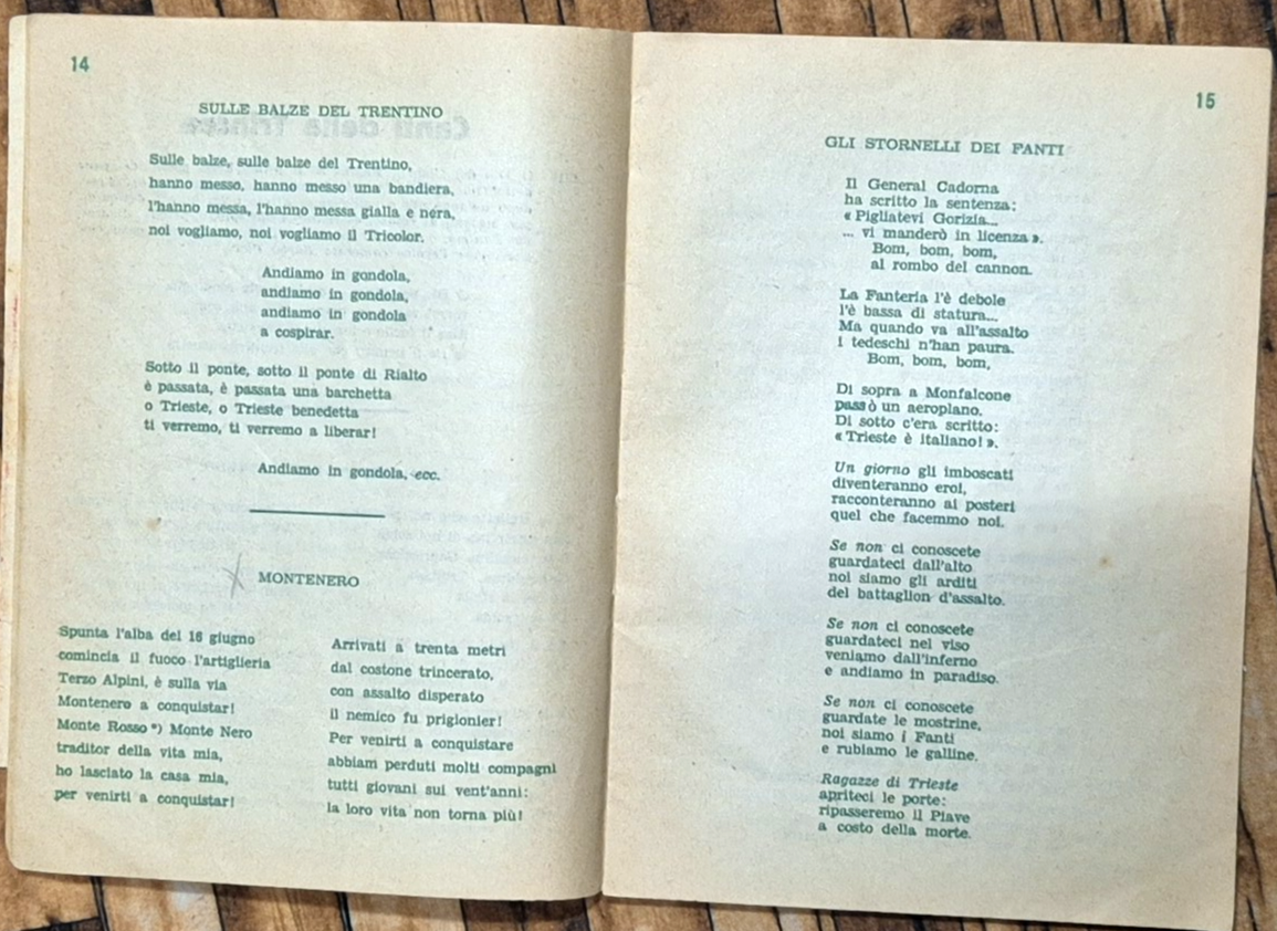 I CANTI DELLA PATRIA di Franco Manisco cenni storici 1936 Libretto solo testo