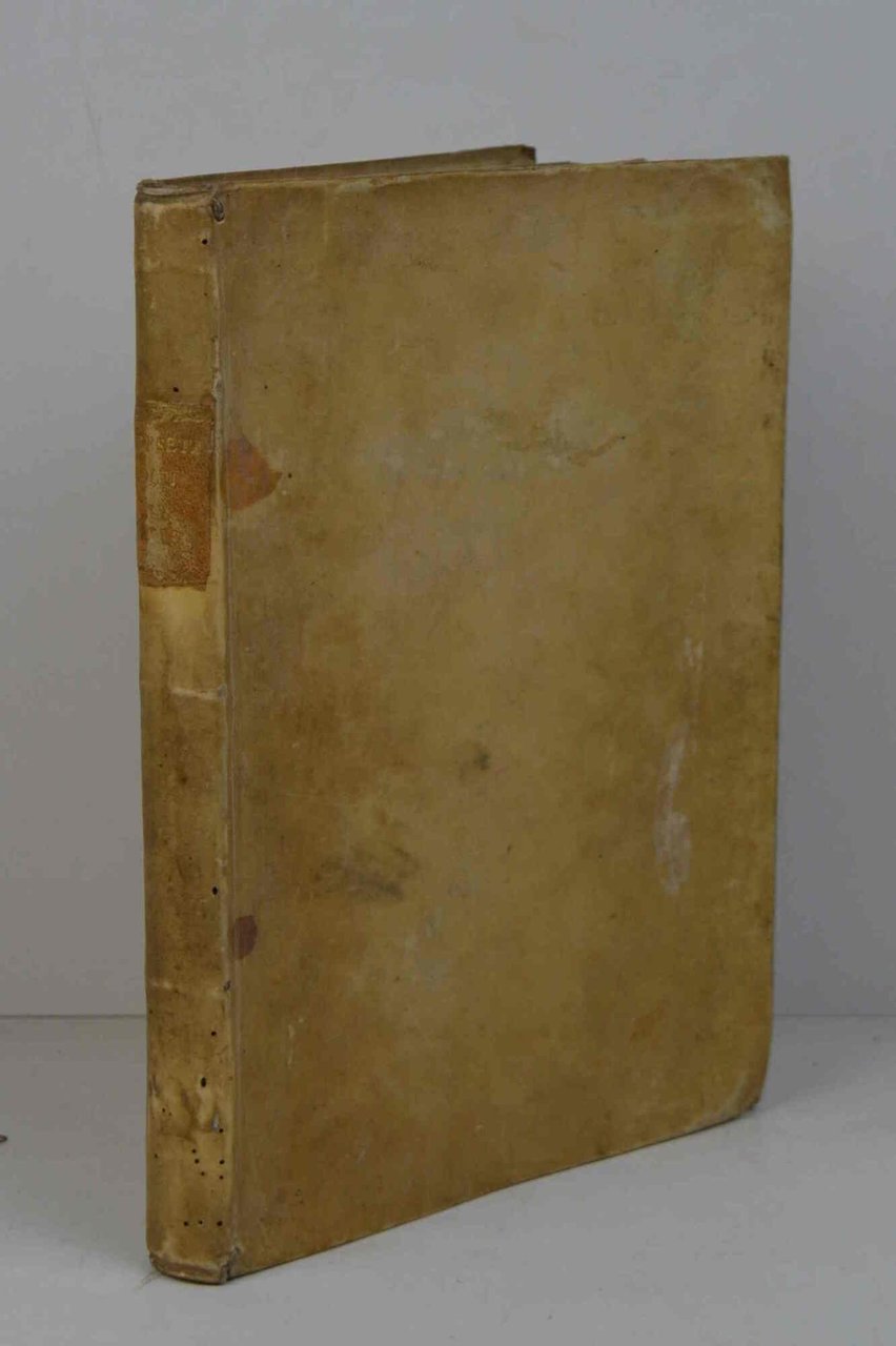 Cm. 28, pp. (12) 314 + 1 carta bianca. Bel ritratto dell'autore inciso in rame all'antiporta (Andra Bolzoni incisore). Alcune testate e capolettera incisi. Leg. strettamente coeva in piena pergamena rigida con titoli in oro al dorso. Bei tagli decorati a colori. Esemplare, marginoso e ben conservato. Edizione originale ed unica di quest'elegante pubblicazione che raccoglie varie invenzioni poetiche del Borsetti. Si segnalano alcuni curiosi componimenti: Circa il prender moglie; Viaggio a Parigi; Navigazione del Canal di Baùra; Il salame; Proemiale di un Viaggio, fatto dall'Autore per l'Orbe della Luna (che prende il via nel mezzo dell'Osteria della Fraschetta...). Il Borsetti (Ferrara 1682 - ivi 1764) partecipò attivamente alla vita culturale cittadina ed occupò varie cariche pubbliche; fu studioso di storia locale e in età avanzata si dedicò alla sua principale passione: la letteratura.