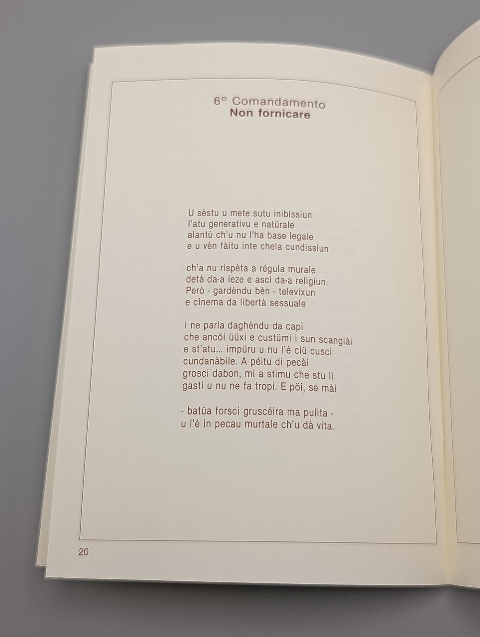 I Deixe Cumandamenti Au Giurnu d'Ancoi. I Dieci Comandamenti Al Giorno d'Oggi. Dialetto Sanremasco