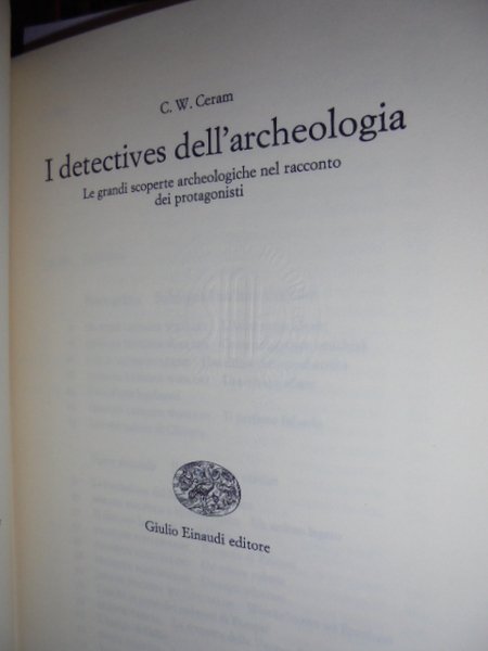 C. W. CERAM - Torino, Einaudi Editore, 1968. Le grandi scoperte archeologiche nel racconto dei protagonisti. IN-8°, TELA CON SOVRACOP. 408 PP. CON 32 TAVOLE IN BIANCO E NERO STAMPATE SU CARTA PATINATA FUORI TESTO. BEN CONSERVATO.
