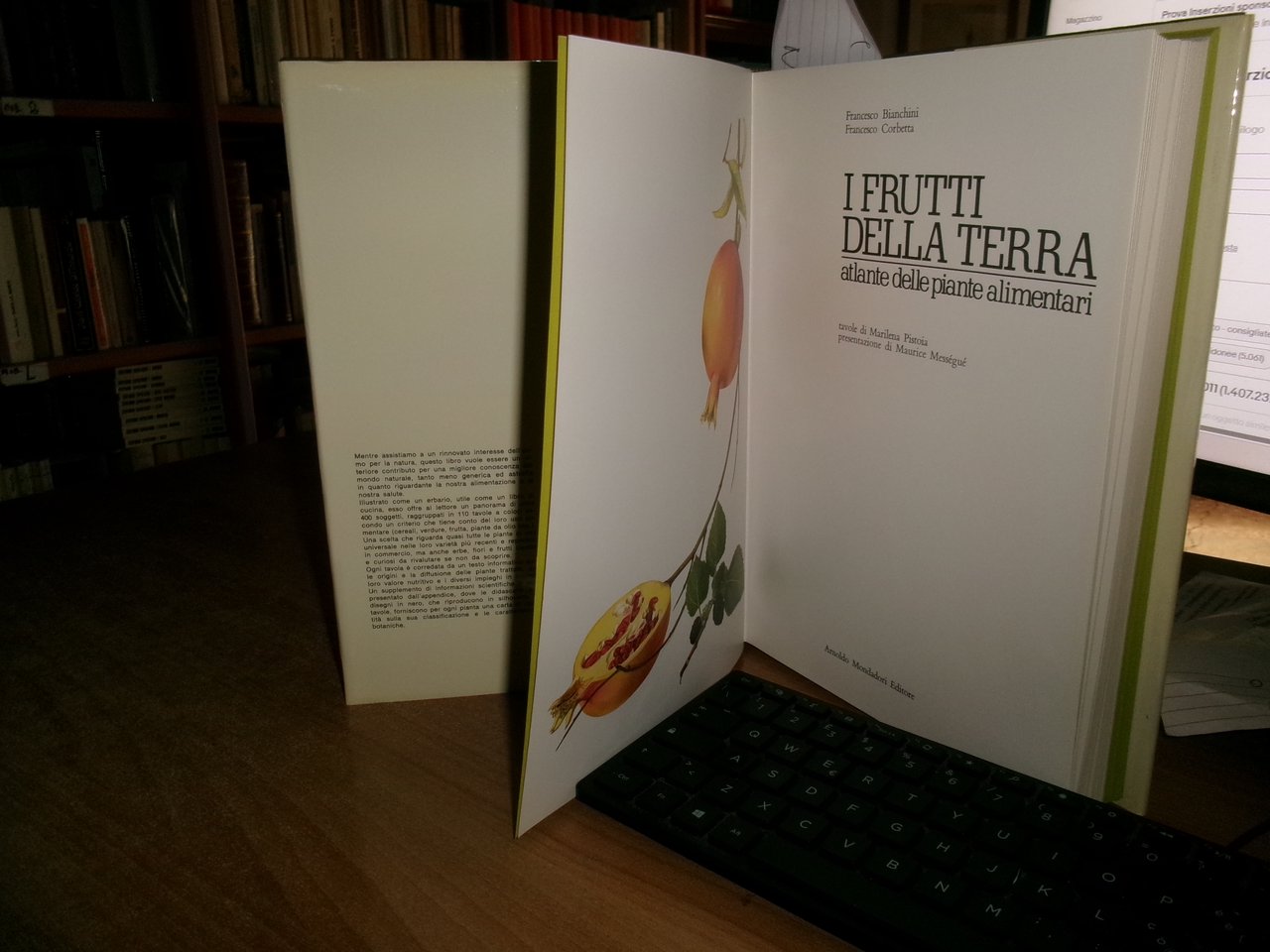 Francesco Bianchini. Francesco Corbetta. Milano. Arnoldo Mondadori, 1973. I Frutti della Terra atlante delle piante alimentari. Prima edizione. In-4°, tela edit. con sovracopertina ill. a col. 303 pp. con numerose tavole a colori di Marilena Pistoia. Presentazione di Maurice Mességué. Come nuovo. Neg. mob. 22