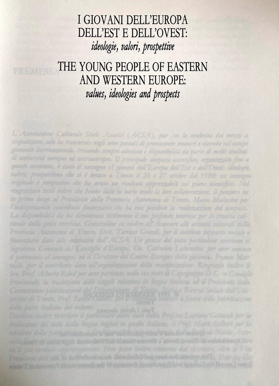 I GIOVANI DELL'EUROPA DELL'EST E DELL'OVEST: IDEOLOGIE, VALORI, PROSPETTIVE. THE YOUNG PEOPLE OF EASTERN AND WESTERN EUROPE: VALUES, IDEOLOGIES AND PROSPECTS