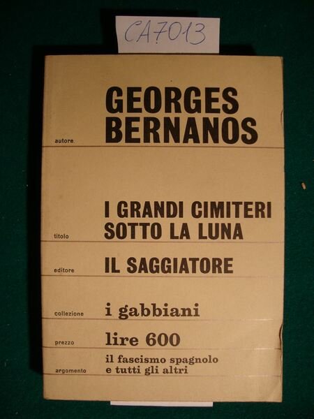 (Collana : I gabbiani - n. 24) Collana che con novità e ristampe mette alla portata di tutti la più completa raccolta di libri che bisogna leggere per essere alla pari con la cultura e la vita moderna. Il fascismo spagnolo e tutti gli altri - DETTAGLIO DELLE CONDIZIONI : Minute fioriture in coperta - .