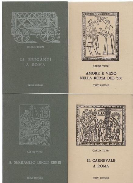custodia cartonata rigida illustrata con 4 volumi Briganti A Roma, Il Serraglio Degli Ebrei, Il Carnevale A Roma, Amore E Vizio Nella Roma del '500 Trevi editore in buone condizioni n. pag. 45+46+45+45 cm. 15,5 x 10,5