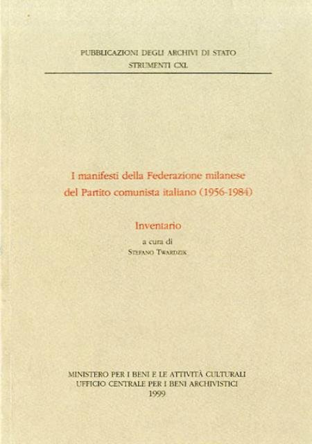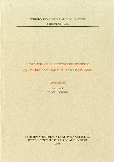 349 p. : ill. ; 24 x 17 cm. Pubblicazioni degli archivi di Stato. Strumenti. Questo testo è il frutto di un ampio lavoro originale e approfondito svolto da Stefano Twardzik per la compilazione della sua tesi di laurea, sulla collezione dei manifesti della Federazione milanese del Partito comunista italiano (1956-1984) conservati presso l'ISEC (Istituto per la storia dell'età contemporanea). . Brossura editoriale, coperta in cartoncino flessibile di colore grigio, titolo impresso in rosso al piatto e al dorso. All'interno numerose tavole a colori. Codice libreria 3210.