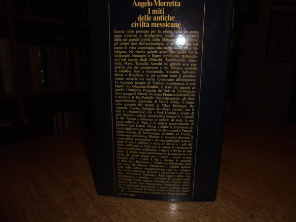 ANGELO MORETTA. Milano, Longanesi & C., 1984. I Miti delle antiche civiltà messicane. Olmechi, Teotihuacani, Zapotechi, Maya, Toltechi, Aztechi. In-8°, tela edit. con sovracopertina ill. a col. 327 pp. con numerose figure nel testo e in tavole fuori testo. Come nuovo. Neg. civiltà mob. 13