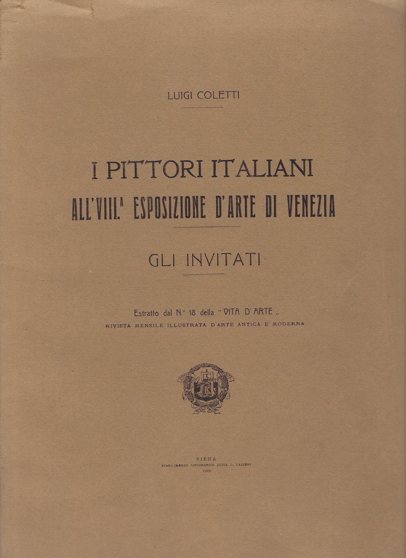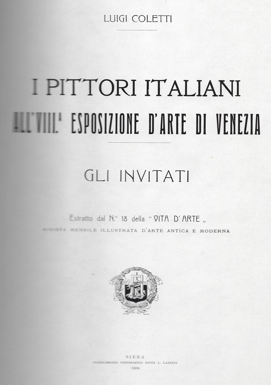 I pittori italiani all'VIII° Esposizione d'arte di Venezia. Gli invitati | Libri antichi e moderni | Coletti Luigi