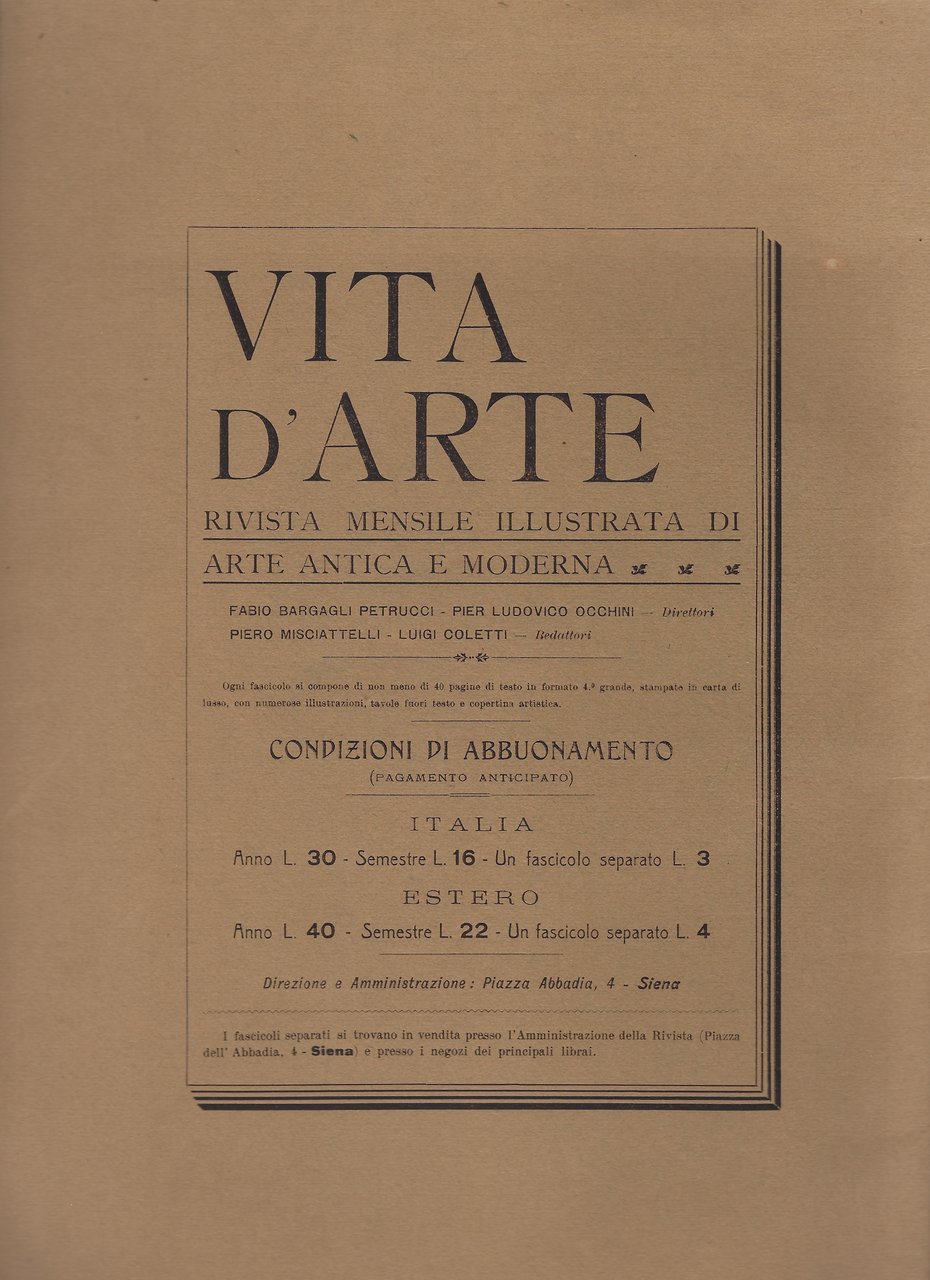 Estratto dal n° 18 della "Vita d'Arte" - Rivista mensile illustrata d'arte antica e moderna.