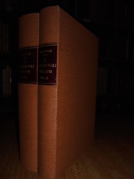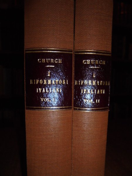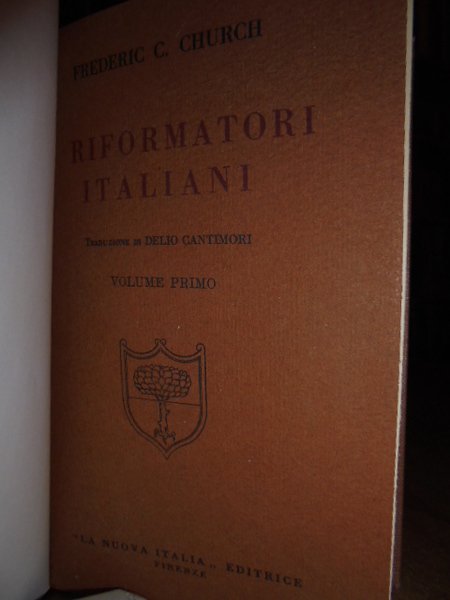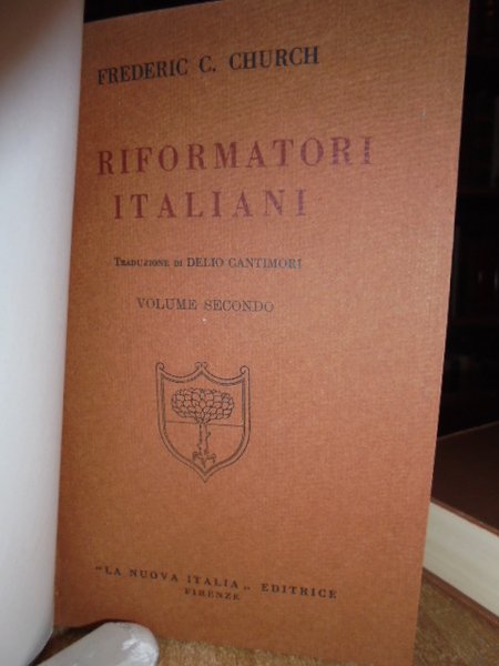 Frederic, C. Church. Firenze, La Nuova Italia Editrice, 1935. I Riformatori italiani. Traduzione di Delio Cantimori. 2 volumi in-8°, tela edit. con titoli in oro entro tasselli al dorso. 398, (1) pp.; 310 pp. Esemplare perfettamente conservato. Finito di stampare in 1500 esemplari numerati nella Tipografia dei Fratelli Stianti in Sancasciano Val di Pesa addì 15 Gennaio 1935. (Es. n° 1110). Neg. mass.