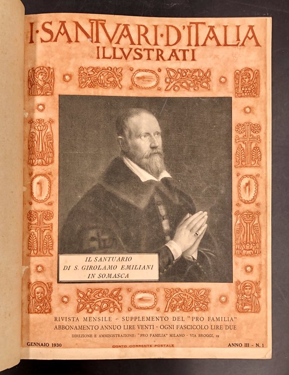 I SANTUARI D'ITALIA ILLUSTRATI. Rivista mensile. Suppl. di "Pro-Familia". Raccolta dei 48 fascicoli delle prime 4 annate: Gennaio 1928 - dicembre 1931.