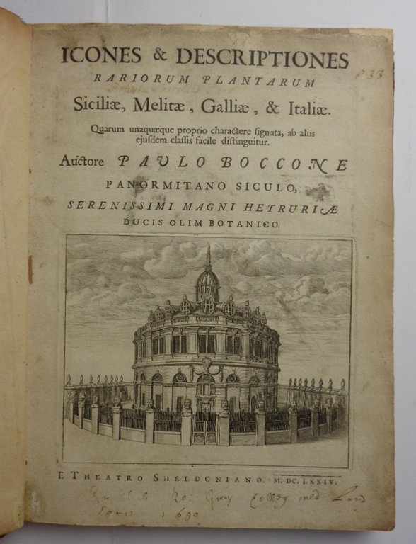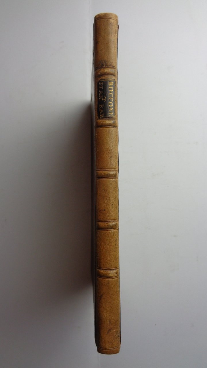 . Quarum unaquaeque proprio charactere signata, ab aliis ejusdem classis facile distinguitur. Auctore Paulo Boccone Panormitano Siculo, serenissimi magni Hetruriae ducis olim botanico. -Un volume (18x23,7 cm) di (8)-96-(8) pagine. Con 52 tavole botaniche incise nel testo. Vecchia nota di possesso alla pagina di titolo, datata 1690. Minimi restauri all'angolo superiore delle prime tre carte. Le ultime quattro carte (8pp) sono occupate dalla dedica del curatore, Robert Motison, a Charles Hatton. In lingua latina. Legatura inglese coeva in piena pelle, ma il dorso è stato completamente rifatto (in modo professionale). Ottimo esemplare genuino di questo raffinato libro di botanica di Sicilia, Malta, Francia e Italia (ma in realtà quasi completamente dedicato alla Sicilia). Paolo Boccone (1633-1704) raccolse e studiò le numerose e diverse specie di piante tipiche delle varie regioni, contemporaneamente osservando qualsiasi evento naturale che si presentasse alla propria attenzione con spirito, se non sempre critico, certo chiarificatore e analizzatore. Delle piante raccolte dette per primo una classificazione, obbedendo in ciò a quella che era ormai sentita come urgente necessità dai naturalisti del Seicento, posti di fronte ad una quantità sempre crescente di specie naturali, che le nuove esplorazioni ed il più vivo spirito di osservazione avevano portato alla conoscenza umana. Per queste ragioni il B. fu considerato uno degli iniziatori degli studi sistematici sulla flora europea, e come tale acquistò solida fama presso i contemporanei e gli studiosi del secolo successivo. (Isabella Sermonti Spada, in Dizionario Biografico degli Italiani)