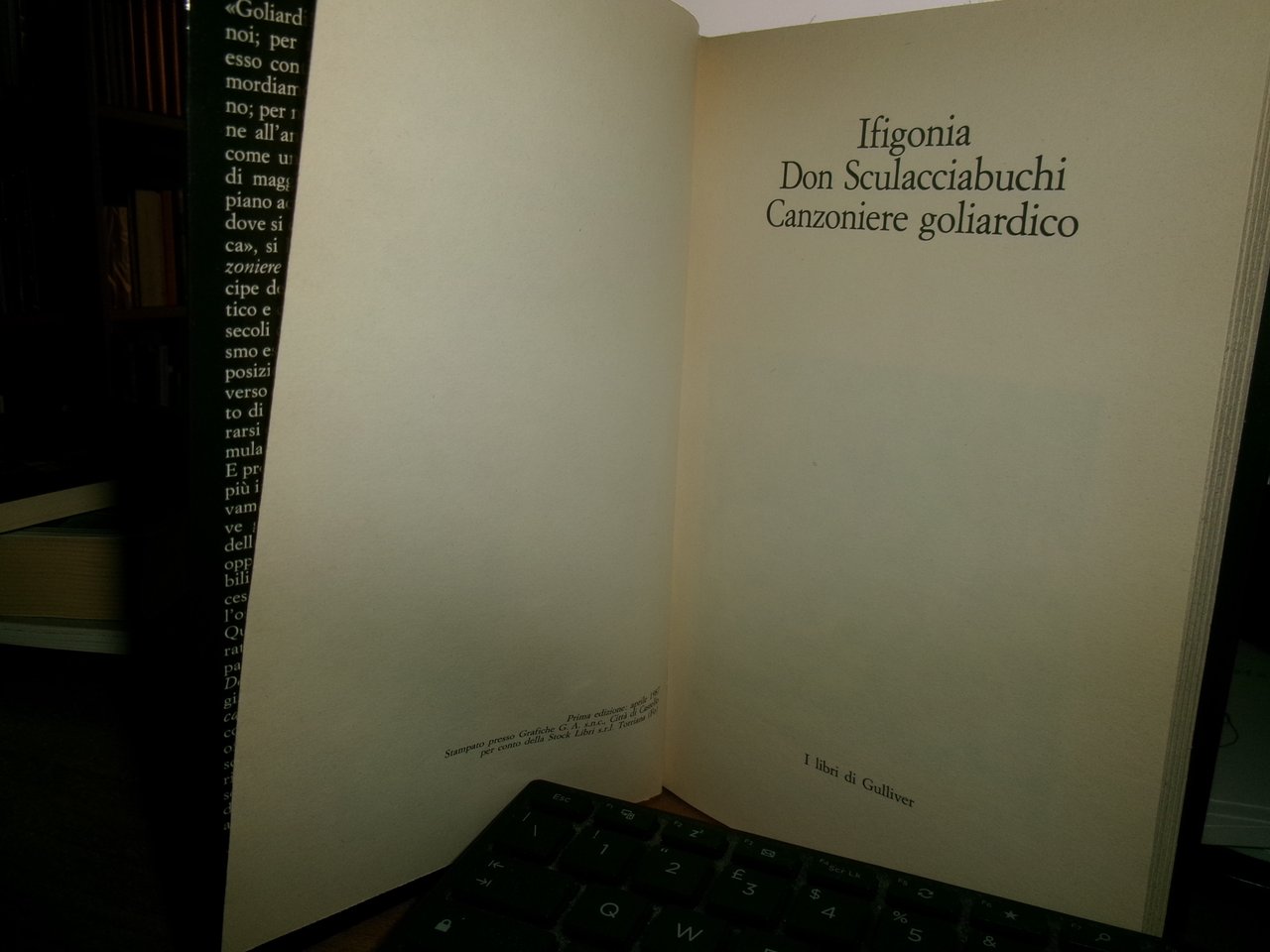 IFIGONIA Don Sculacciabuchi il Canzoniere Goliardico. Città di Castello, (I libri di Gulliver), 1987. In-8°, cart. edit. ill. a col. con alette. 189 pp. Come nuovo. Neg. mob. nero 9