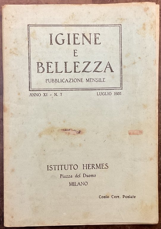 Igiene e bellezza. Pubblicazione mensile. Anno XI- N.7. Luglio 1931