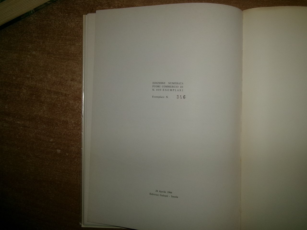 III Centenario della Nascita di ANTON MARIA VALSALVA Rotary Club di Imola. Editrice Galeati, Imola, 24 aprile, 1966. In-8° grande, br. edit. con pellicila trasparente di protezione (con strappetto vicino al dorso). 63 pp. con alcune tavole f.t. Edizione numerata fuori commercio di 800 esemplari. Esemplare N. 346. In ottimo stato (con strappetto nella pellicola trasparente vicino al dorso). Neg. mob. F in busta.