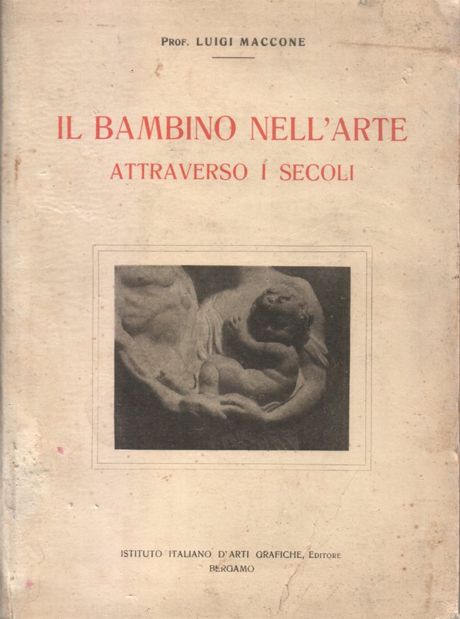 In-8° (cm 26,9x19,6), pp. XIX, (1), 138, (2), legatura editoriale con alcuni segni d'uso e del tempo. Su carta lucida. Timbro tondo di biblioteca alla prima pagina bianca e a pagina 15; ondulazioni a qualche pagina, dovute probabilmente ad umidità. Due strappetti (di 5 millimetri), riparati, nel margine superiore bianco delle pagine con numerazione romana, molto lontano dal testo, per il resto buon esemplare. Indice: Dedica a S. M. la Regina d'Italia; Prefazione del Sen. Leonardo Bistolfi; Prefazione dell'autore; Indice delle illustrazioni; Indice alfabetico; Opere consultate; Proemio; I. Il bambino nell'arte egizia; II. Il bambino nell'arte greco-romana; III. Il bambino nell'arte dei primi tempi del cristianesimo; IV. Il bambino nella rinascenza artistica in Italia - Scultura e pittura; V. Il bambino nell'arte dei secoli XVII e XVIII in Italia - Pittura e scultura; VI. Il bambino nella pittura spagnola del secolo XVII; VII. Il bambino nella pittura fiamminga ed olandese nei secoli XV-XVII; VIII. Il bambino nella rinascenza tedesca (secolo XVI); IX. Il bambino nell'arte francese nei secoli XVI-XVIII; - Pittura e scultura; X. Il bambino nella pittura inglese del secolo XVIII; XI. Il bambino nell'arte del secolo passato; XII. La patologia del bambino nella pittura.
