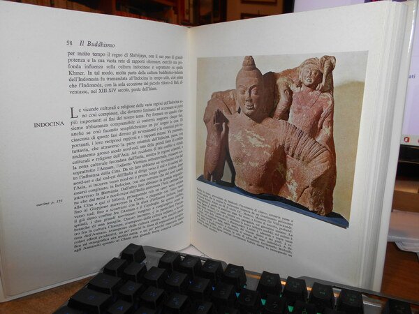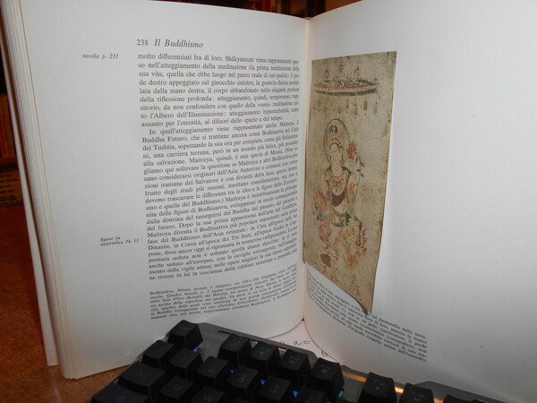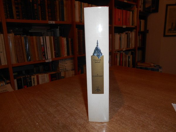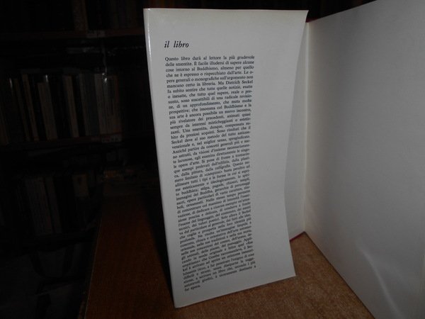 di DIETRICH SECKEL. Milano, Il Saggiatore, 1963. IL BUDDHISMO. Traduzione di Quirino Maffi. In-8°, tela edit. rossa con titoli in oro al dorso e sul piano, sovracopertina ill. a col. 365 pp. con 59 tavole a colori 35 tavole in bianco e nero applicate negli appositi spazi, 74 disegni e 9 carte. Lievi segni del tempo nell' astuccio e pieghetta al retro della sovracopertina. Uff. stanz. TV. mob. nostro sinistra basso
