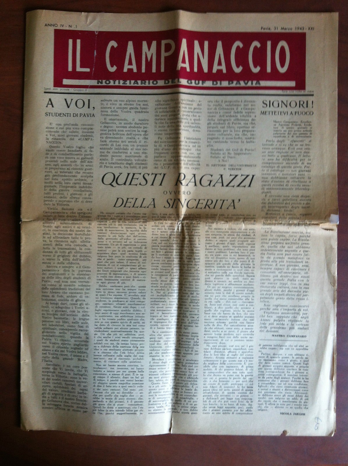 Il Campanaccio Anno IV n^ 1 PAvia 31 Marzo 1943 XXI - E11449
