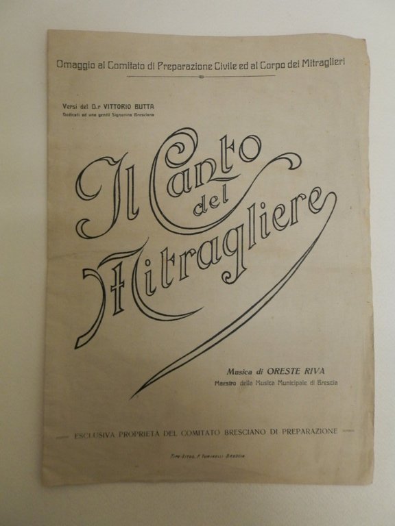 Il canto del mitragliere. Musica di Oreste Riva. versi di Vittorio Butta