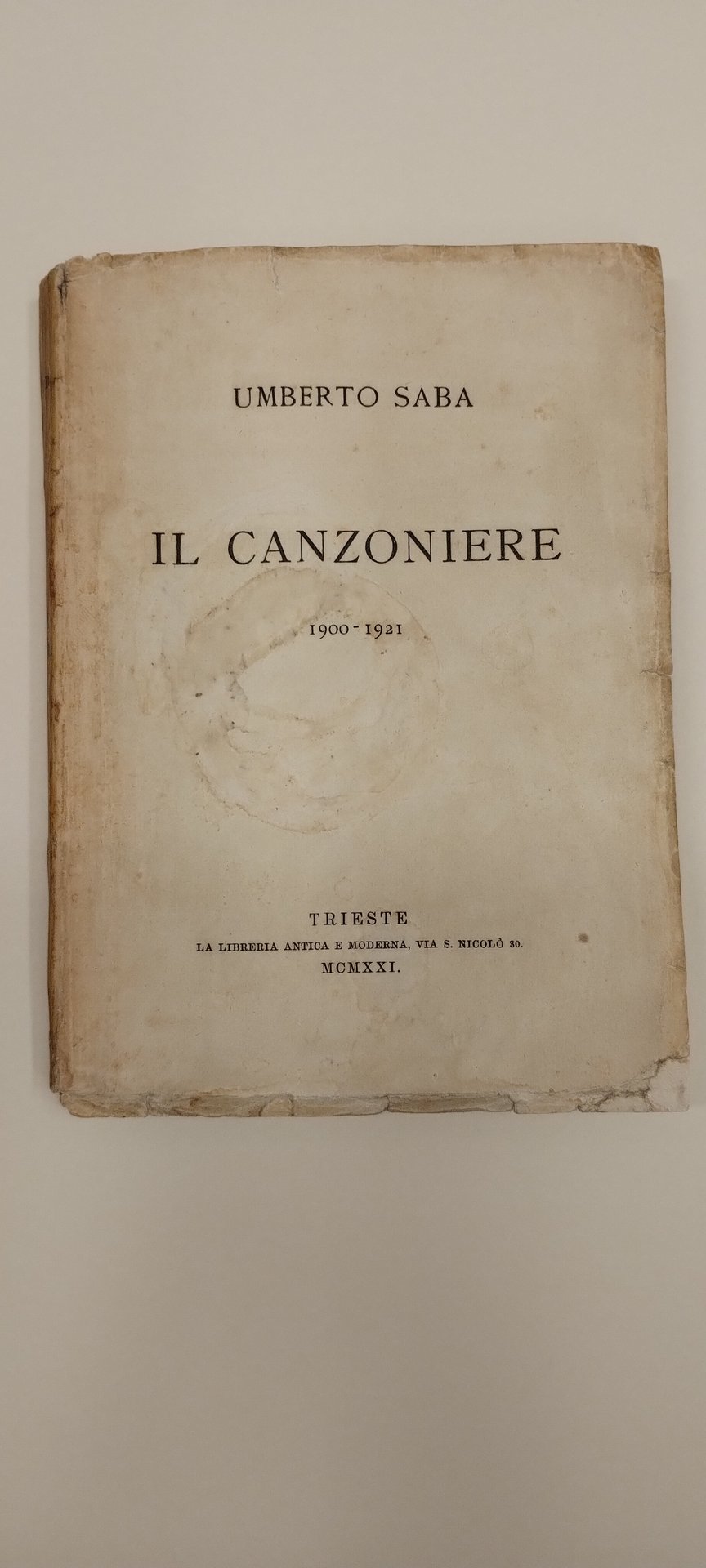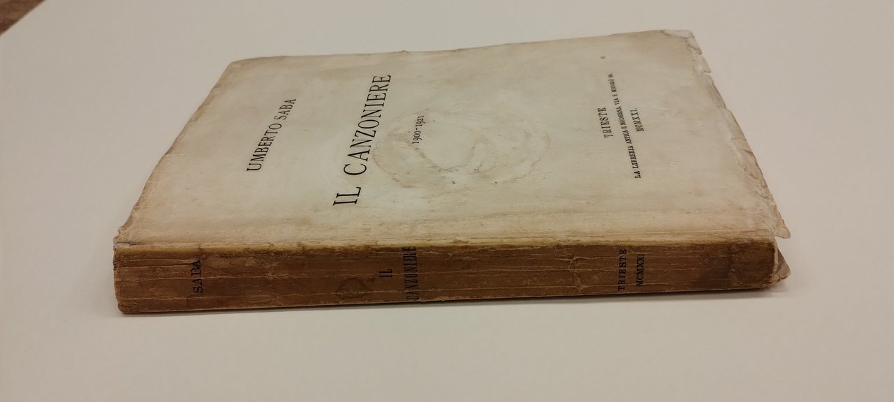 In-16, brossura editoriale,pp.232. Prima tiratura col verso "campagne" al posto di compagne. Dorso leggermente brunito, leggero alone centrale al piatto anteriore, alcuni antichi segni puntiformi in corrispondenza di alcuni titoli delle poesie nell'indice, restauro marginale alle estremità interne dei piatti, alcuni piccolissimi strappi marginali alle copertine, piccola lacuna colmata all'angolo inferiore del piatto anteriore. Buon esemplare di questa rara prima edizione stampata in 500 copie non numerate.