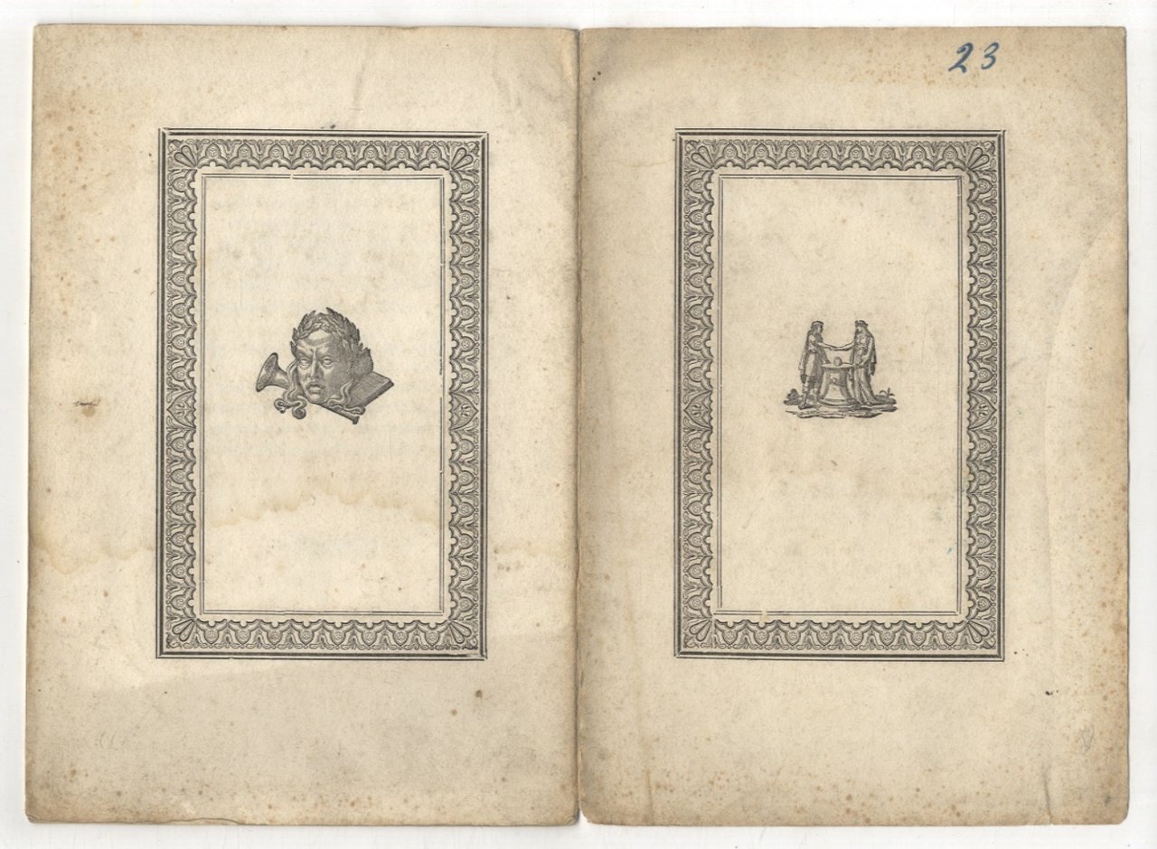 Fermo, dalla Tipografia Paccasassi, 1838, in-8, brossura editoriale con cornici e fregi tipografici, pp. 12.