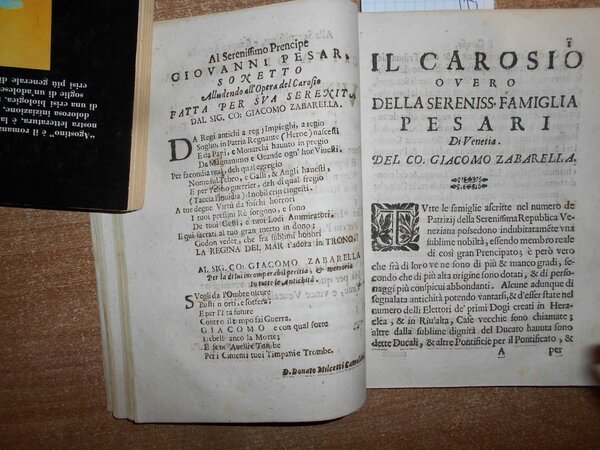 IL CAROSIO OVVERO ORIGINE REGIA ET AUGUSTA DELLA SERENISSIMA FAMIGLIA PESARI DI VENETIA PADOVA, STAMPERIA CAMERALE. 1659 1659