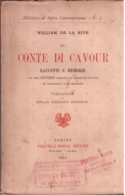 Il Conte di Cavour Racconti e memorie con tre lettere del Conte di Cavour - 18 illustrazioni e 1 facsimile - Prefazione di Emilio Visconti Venosta