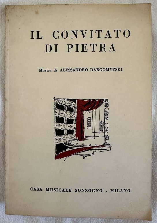Bel libretto d'opera del 1958 dell'opera "Il convitato di pietra" di Alessandro Dargomyzski.<BR><BR>Nota manoscritta al frontespizio "Piccola Scala 31/3/58 Gavazzeni" e lista manoscritta degli attori (Filacuridi, Calabrese, Cavalli, Zaccaria)<BR>In ottime condizioni.<BR>Copertina editoriale in buone condizioni generali con lievi usure ai margini e dorso. Legatura in buone condizioni. All'interno le pagine si presentano in buone condizioni con rare fioriture. In 16. Dim. 15,5x10,5 cm. Pp. 39.