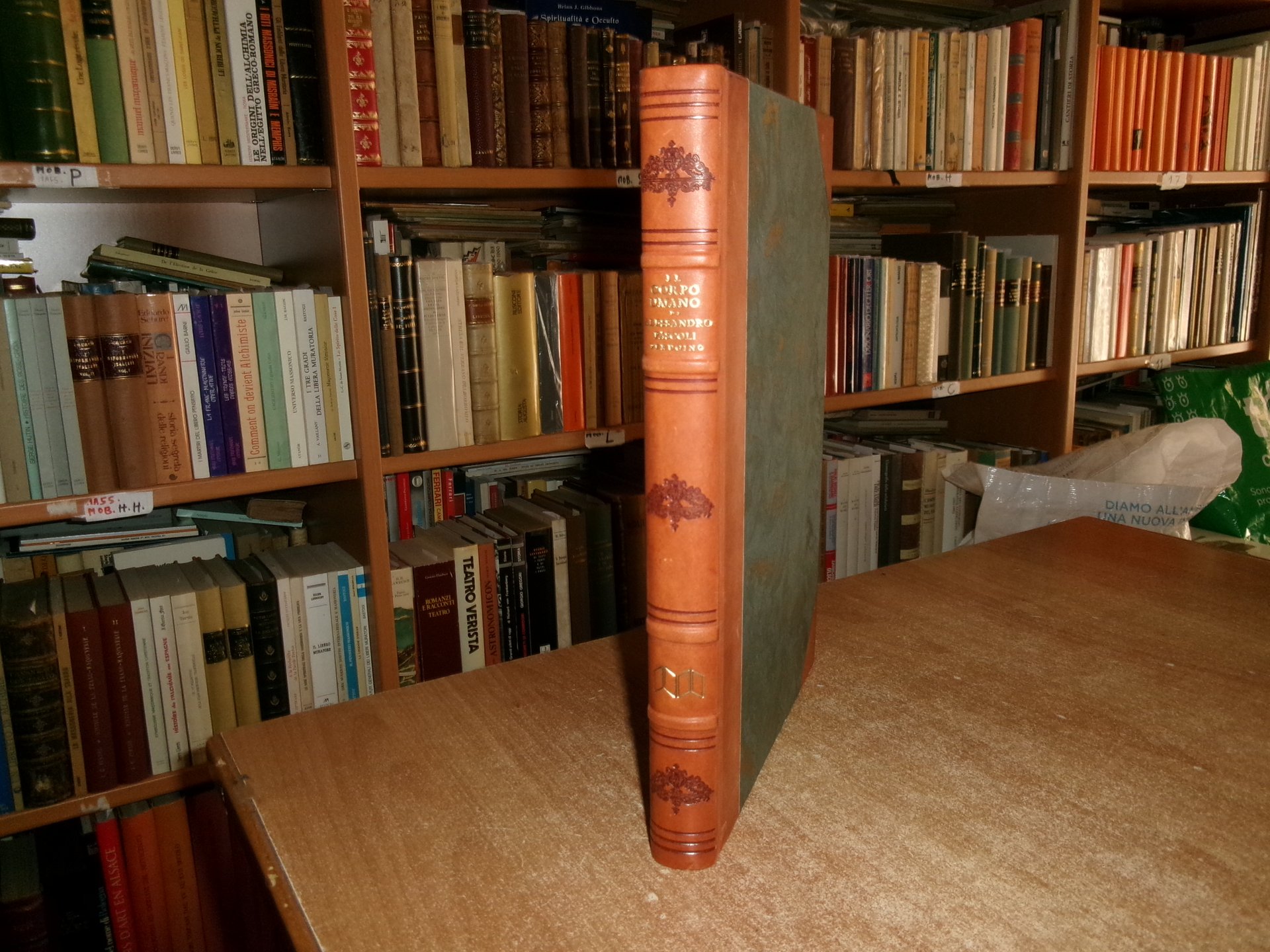 Il corpo umano. Alessandro Pascoli (Perugino) Casa Editrice Mattioli, 1991. In-4°, m-pelle con angoli, dorso a nervi con fregi e titolo in oro. (viii), 217 pp. Copia anastatica: il volume originale, edito in Venezia nel 1774, è conservato presso la Biblioteca Provinciale dei Cappuccini di Parma. Con 20 tavole in b/n f.t. Testo in latino e italiano. Ottimo stato in bella legatura con una dedica nella prima bianca. Testo in latino e italiano. Uff. C - III - 2 -2