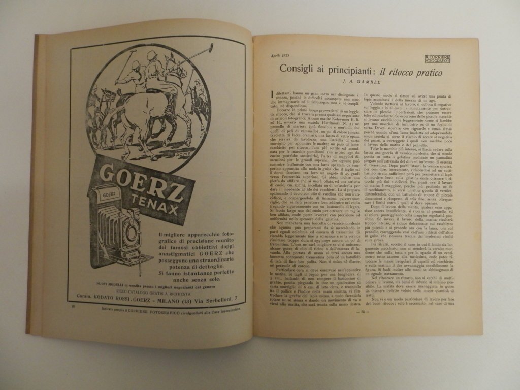 8°, pp. (20), 56, 4 tavole fuori testo, brossura editoriale, titolo incorniciato al piatto, esemplare molto buono. Tra gli altri articoli: I processi ai colori secchi. La bromoresinocromia Venzo, consigli ai principianti: il ritocco pratico. *** TUTTI I NOSTRI LIBRI SONO VISIBILI PREVIO CONTATTO MAIL O TELEFONO NELLA NUOVA SEDE DI MILANO: LIBRERIA COSMOPOLIS, VIA JOMMELLI, 22. ***
