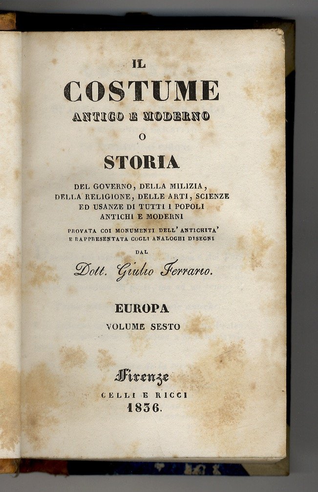 Il costume della Spagna e del Portogallo, rintracciato e descritto da Robustiano Gironi. [Segue:] Ferrario Giulio. Il costume dei Francesi. Descritto dal Dott. Giulio Ferrario [In:] Ferrario Giulio. Il costume antico e moderno [.] Europa. Volume sesto.
