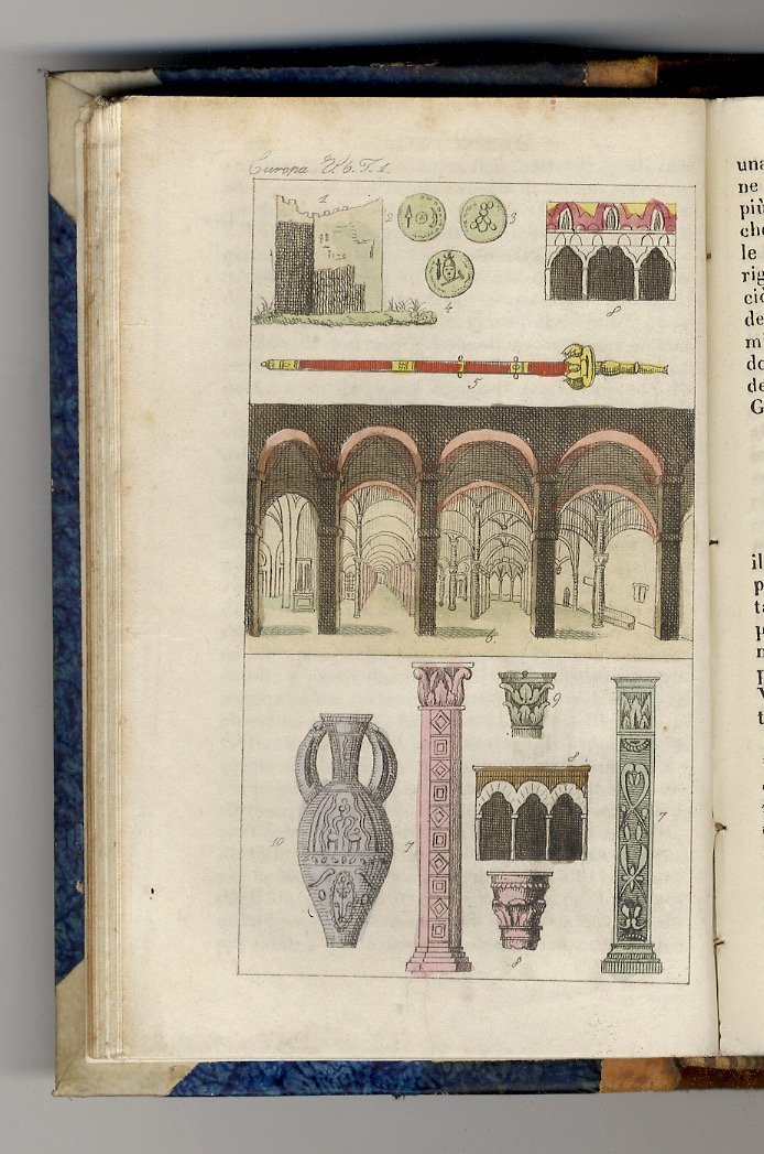 Firenze, Celli e Ricci, 1836, un volume in-16, legatura ottocentesca in mezza pelle con punte in pergamena, titolo e numero di volume in oro ai dorsi, pp. 812, [2]. Con 10 tavole incise in rame acquerellate (interamente o parzialmente) f.t. Buone condizioni.
