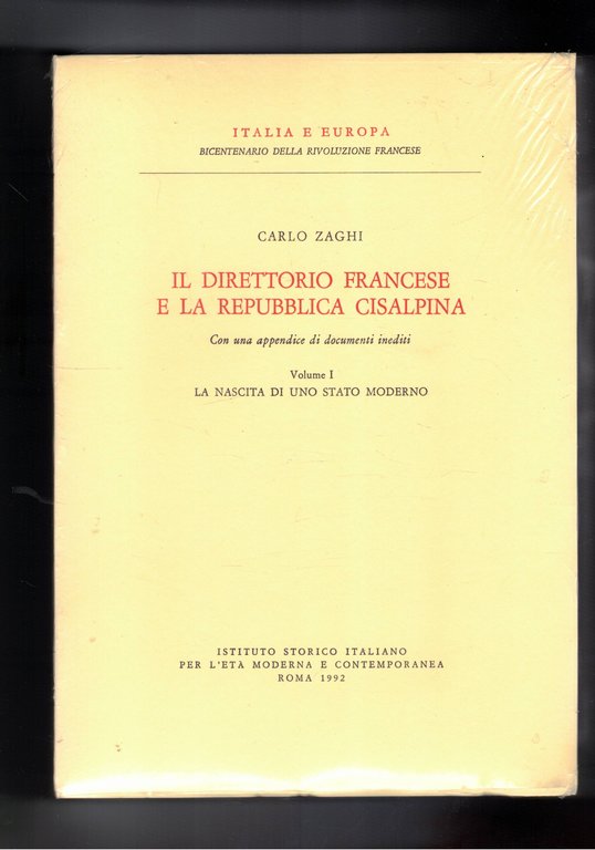 Il direttorio francese e la Repubblica Cisalpina, con una appendice di documenti inediti. Vol. I-II°: la nascita di uno stato moderno. Battaglie costituzionali e colpi di Stato. | Libri antichi e moderni | Zagi Carlo.