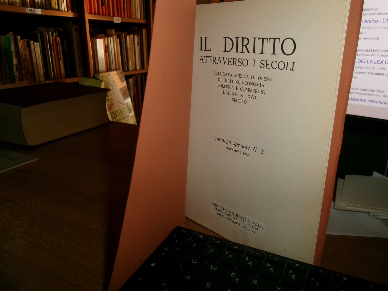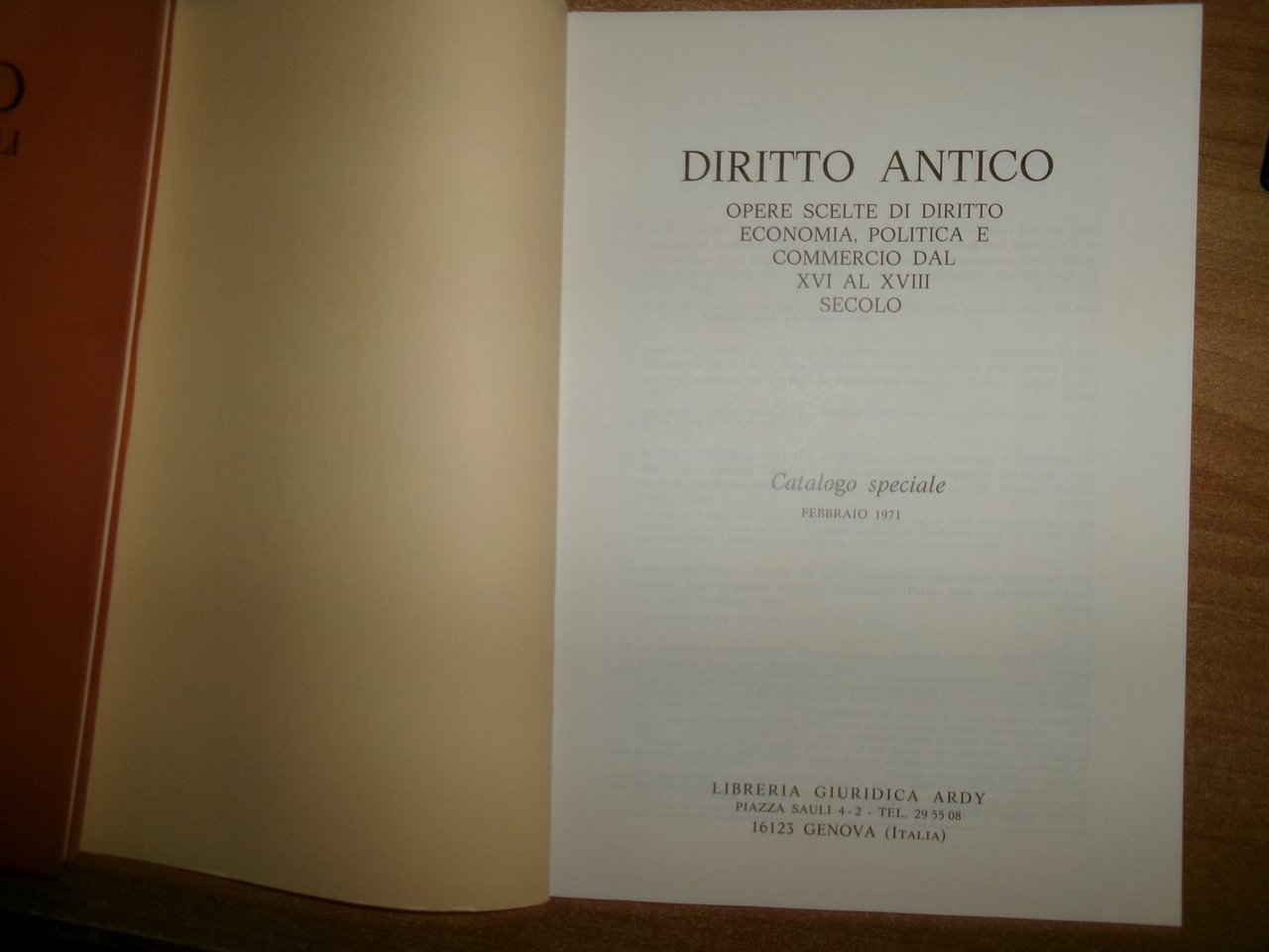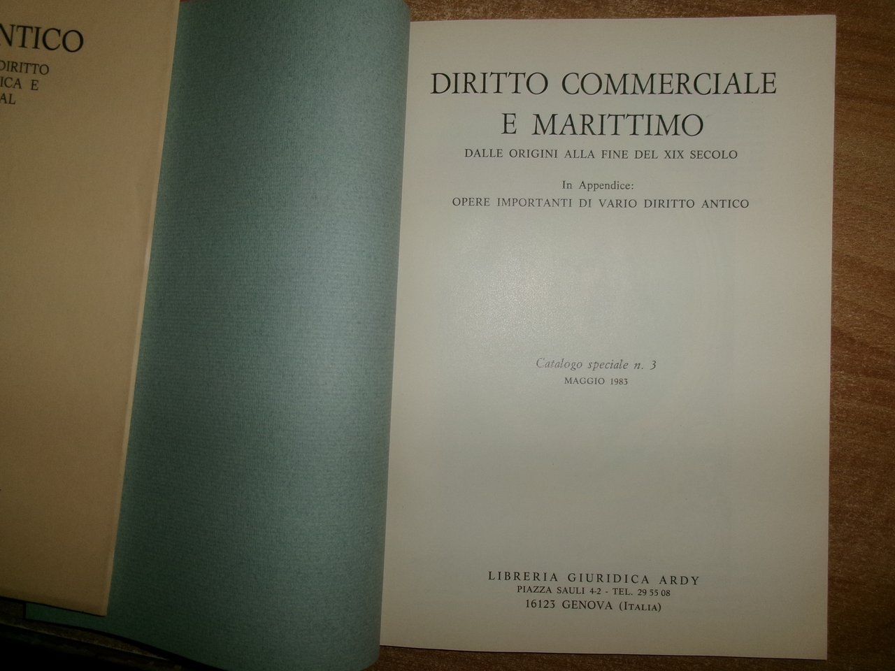 Genova, Libreria Giuridica, Ardy, 1972/71/83. Il Diritto attraverso i secoli...Antico...Commerciale e Marittimo. 3 cataloghi in-8°, br. 107 pp. con numerose riproduzioni in tavole n.t.; 84 pp. con illustrazioni nt.; 77 pp. con illustrazioni n.t. Come nuovi. Neg. mob. 18 entro busta trasp.