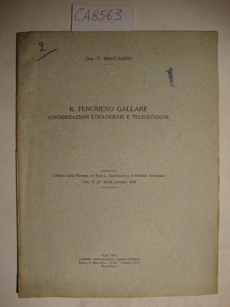 Estratto dalla - Rivista di Fisica, Matematica e Scienze Naturali - - Vol. 3° (2^ serie) - Gennaio 1929 - DETTAGLIO DELLE CONDIZIONI : Segni al piatto anteriore, minute fioriture sparse - .