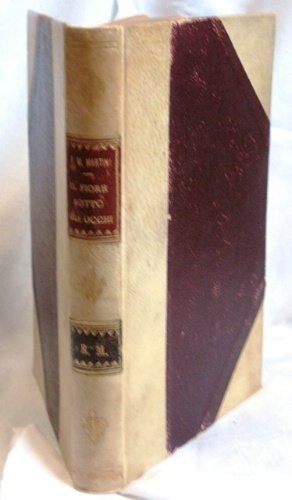 In-16° gr., pp. 220. Leg. post. mz. pergamena a fascia larga con punte, tit. impresso in oro entro doppia cornice filettata impressa in oro su tass. in pelle rossa appl. al ds., iniziali di antico proprietario impresse in oro entro doppia cornice filettata impressa in oro su tass. in pelle marrone appl. al ds., piatti in tl. granata, bross. orig. non conservate, tit. rosso e marca edit. b/n al frontespizio. Dedica in penna dell'A. (?) all'occhiello, fioriture e ingialliture diffuse, lievi tracce di consunzione alla leg.