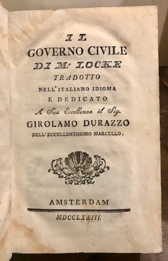 Il governo civile di mr. Locke tradotto nell’italiano idioma | Libri antichi e moderni | Locke John