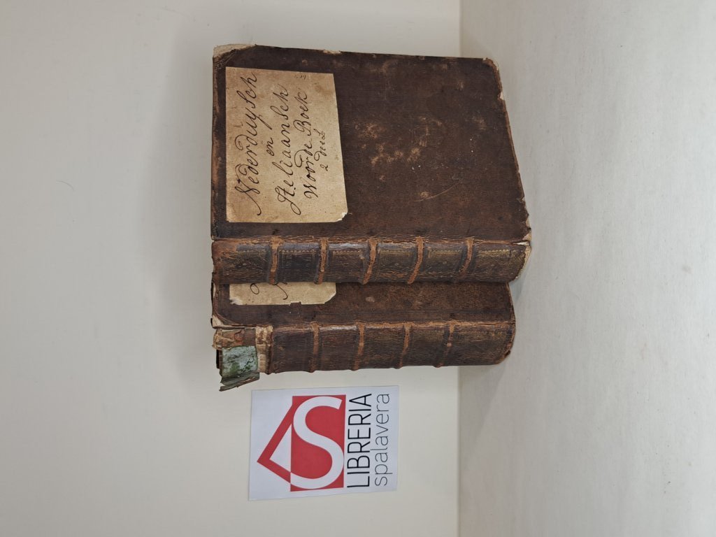 4°, cm 24, due volumi di pp. (6), 1080, 860; con due antiporte incise raffiguranti un passaggio ad arco ornato da medaglie con i volti dei maggiori poeti italiani Dante, Petrarca, Bembo e Boccaccio. Legature in piena pelle coeva, sguardie marmorizzate, piatti con tassello cartaceo e titolo manoscritto. La cuffia del primo volume parzialmente distaccata, decorazioni in oro leggermente sbiadite e abrasioni ai piatti specie al margine inferiore del secondo tomo, ma nell'insieme esemplare più che accettabile e internamente ben conservato. Non comune completo delle due parti.