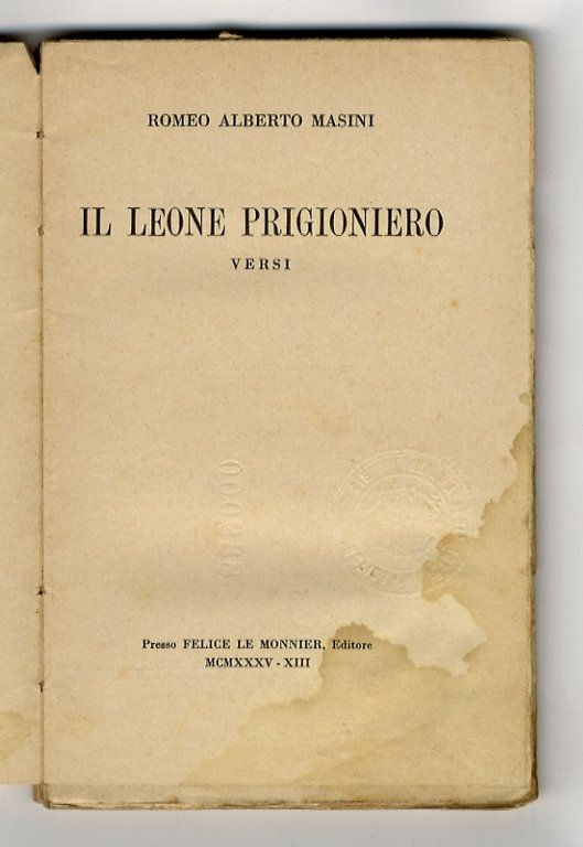Il leone prigioniero. Versi.