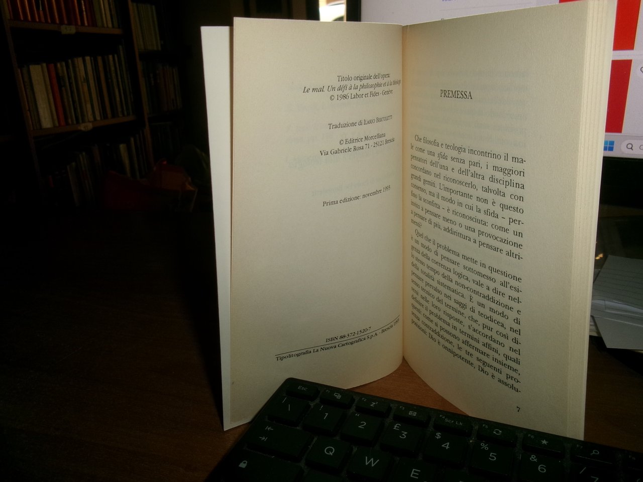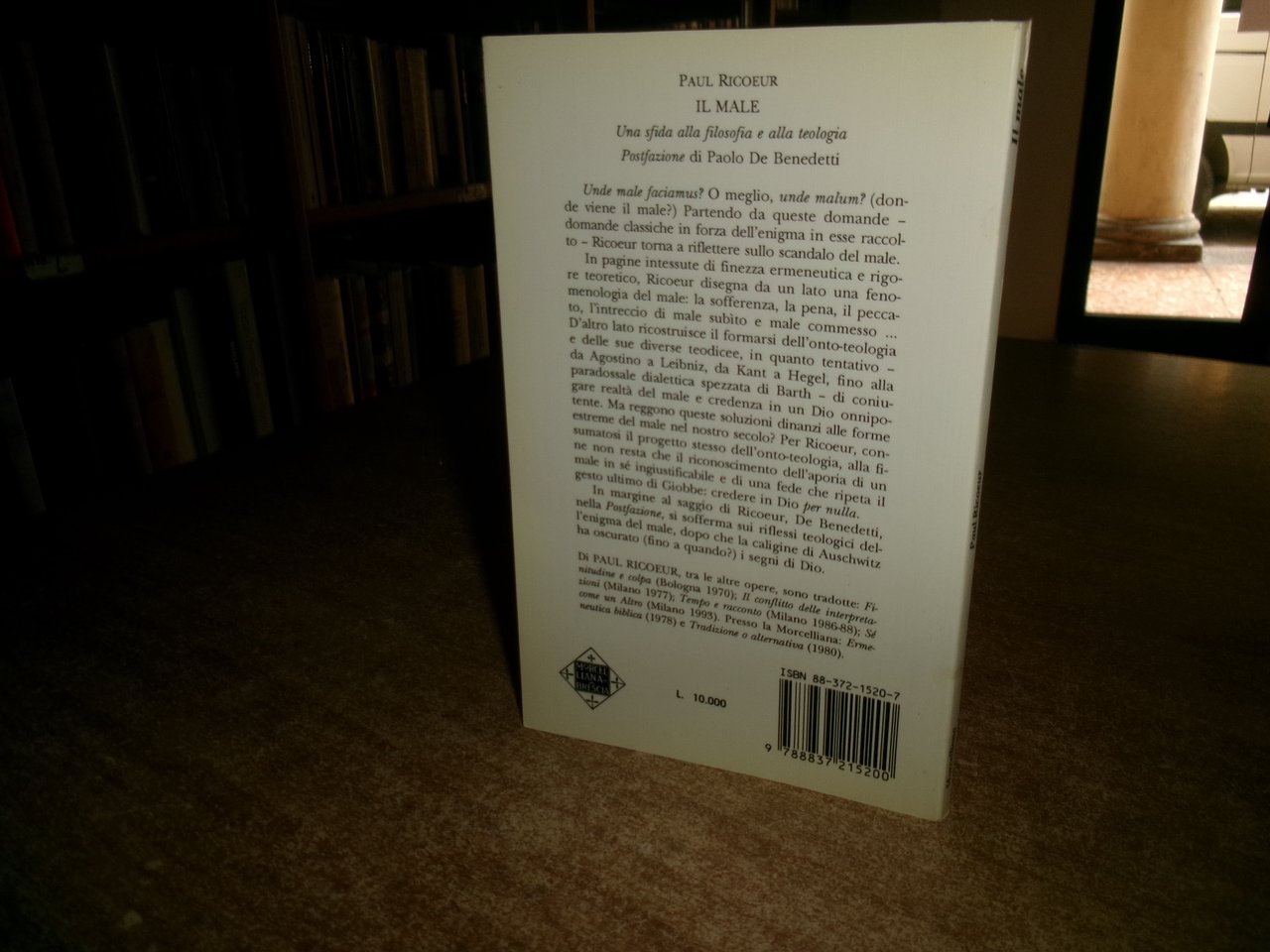 PAUL RICOEUR. Brescia, Editrice Morcelliana. IL MALE Una sfida alla filosofia e alla teologia. In-16° grande, br. edit. 77 pp. Come nuovo. Neg. esot. mob. 51
