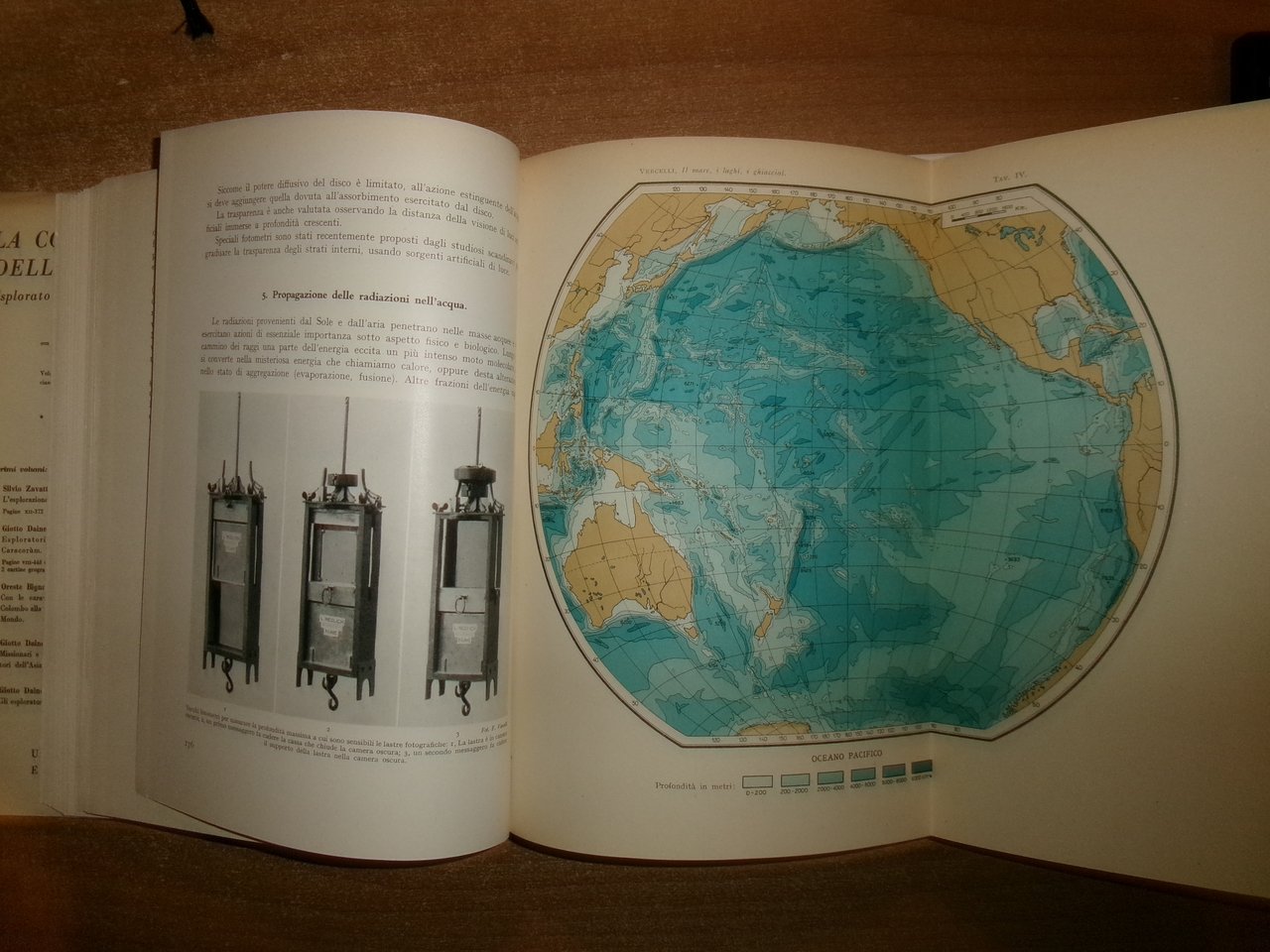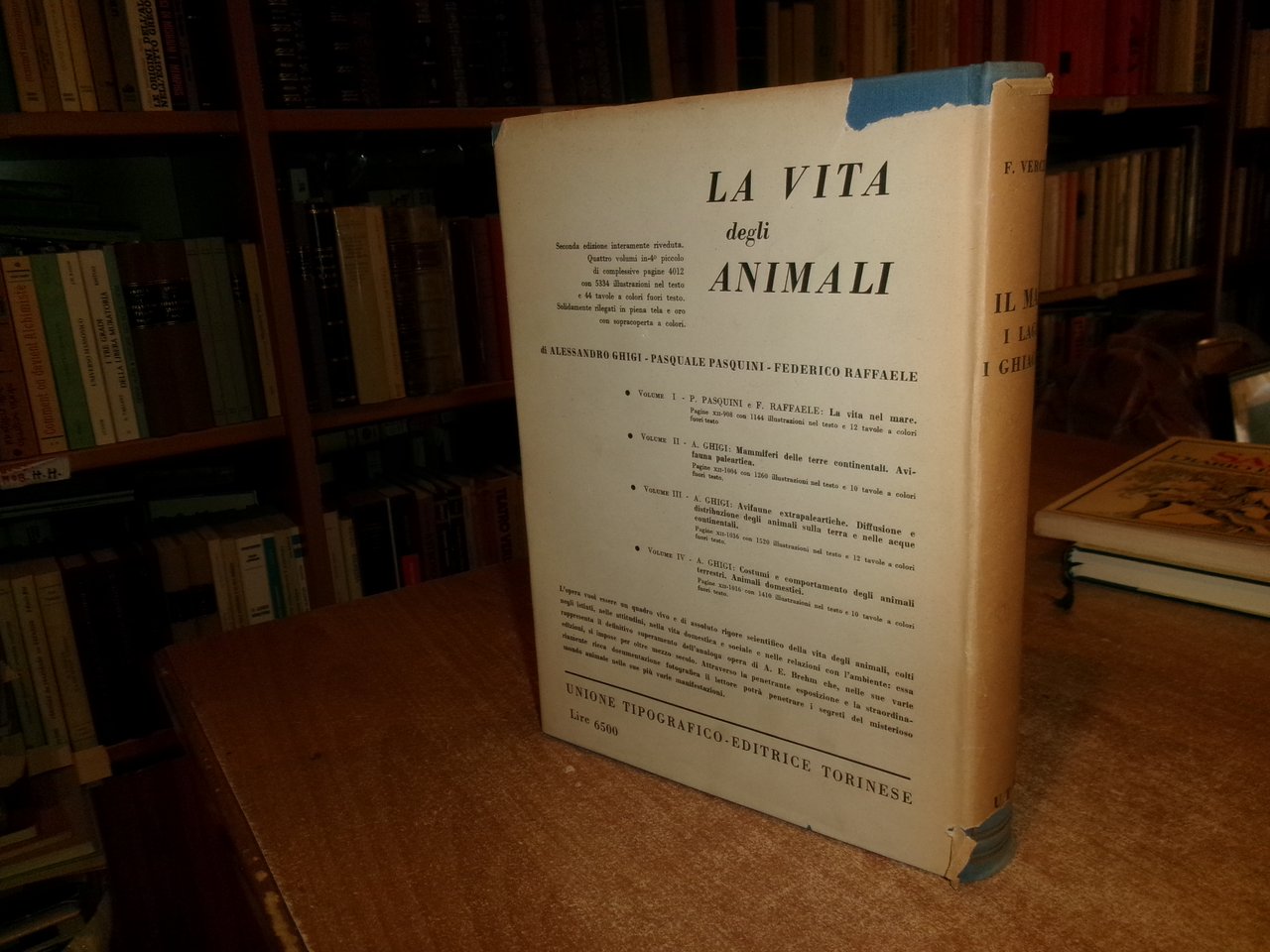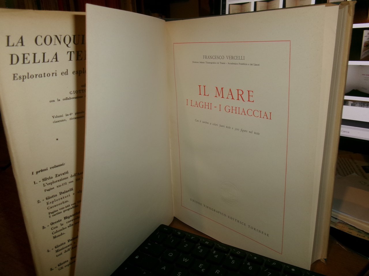 Francesco Vercelli. Torino, U.T. E. T., 1951. IL MARE - I LAGHI - I GHIACCIAI. In-8°, tela edit. azzurra con titoli in oro, sovracopertina ill. a col. (con strappi e mancanze). xvi, 622 pp. con 6 cartine a colori fuori testo e 500 figure nel testo. Il libro è classificato in buono stato di conservazione perchè la sovracopertina presenta strappi e mancanze come da foto ma il libro è in ottimo stato. Neg. mob nat. 22