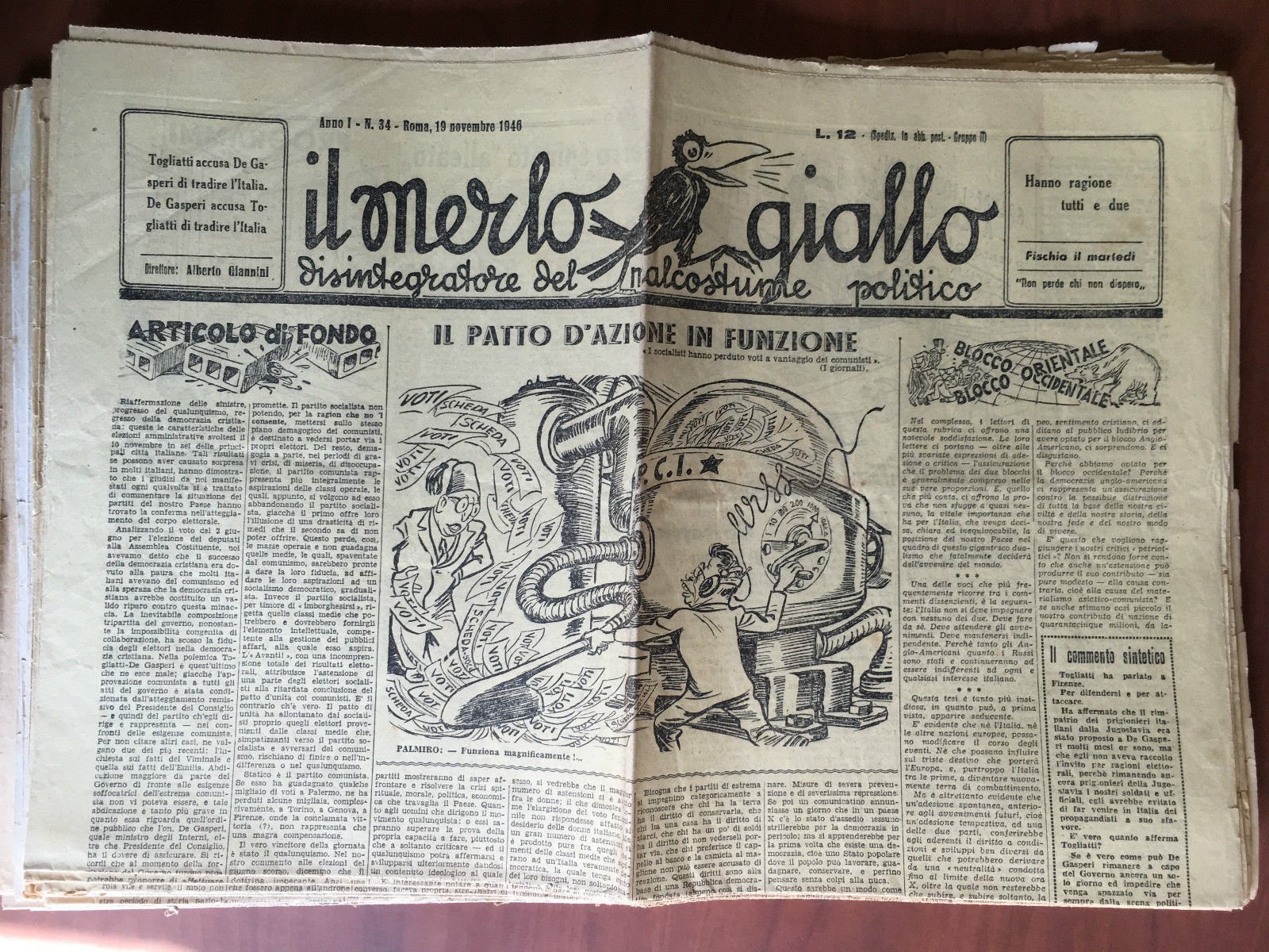Il Merlo giallo Anno I n^ 34 Roma 19 Novembre 1946 Dir. Alberto Giannini- E21697