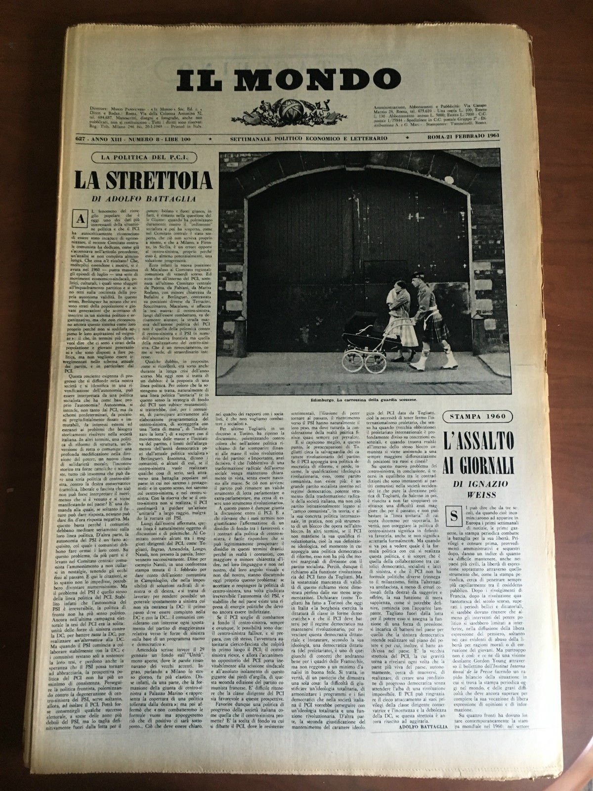 IL MONDO Settimanale Politico Economico e Letterariodiretto da Mario Pannunzioin buono stato salvo piccoli strappi ai bordi e nei segni di piega e lieve brunitura(circa 150 g)E21828